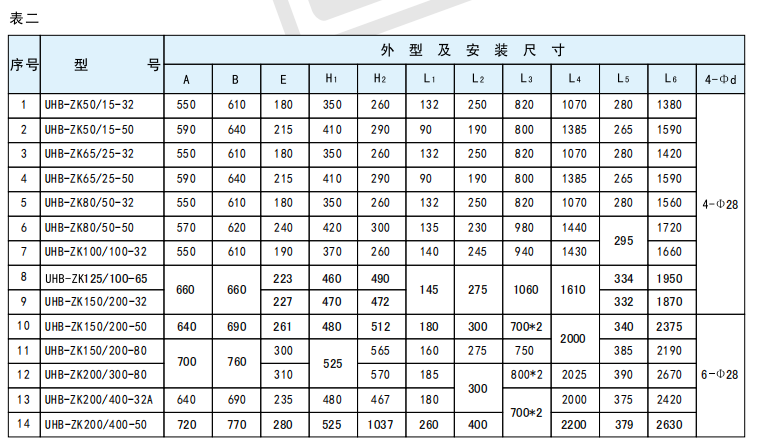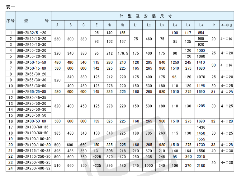 UHB-ZK125/140-28 UHB-ZK100/100-40 UHB-ZK100/60-50